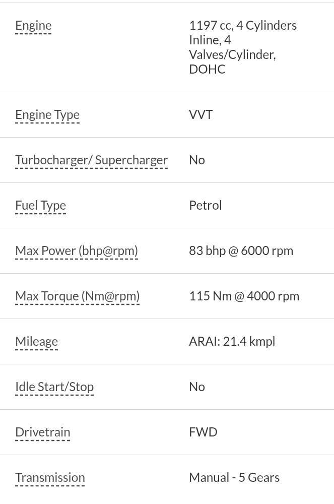 Max Power (bhp@rpm) 83 bhp @ 6000 rpm, Max Torque (Nm@rpm) 115 Nm @ 4000 rpm Bootspace – 339 litres, Fuel Tank Capacity – 37 litres Ground Clearance – 170 mm, Mileage (ARAI) – 21.4 kmpl, Wheels – Alloy Wheels, Sunroof – No, Airbags – 02, Tyre Size –195/55R16, We provide 6 months warranty on Engine and Gearbox for mentioned vehicle, 1% TCS applicable on transaction above 10 Lakhs refundable and by Govt. Insurance RTO charges extra, if applicable. Monday Our Showroom Is Closed. This Vehicle Registration Date Is 21-09-2017 And Manufacturing Date Is 08-2017 NCAP rating of this vehicle is 4 Star.