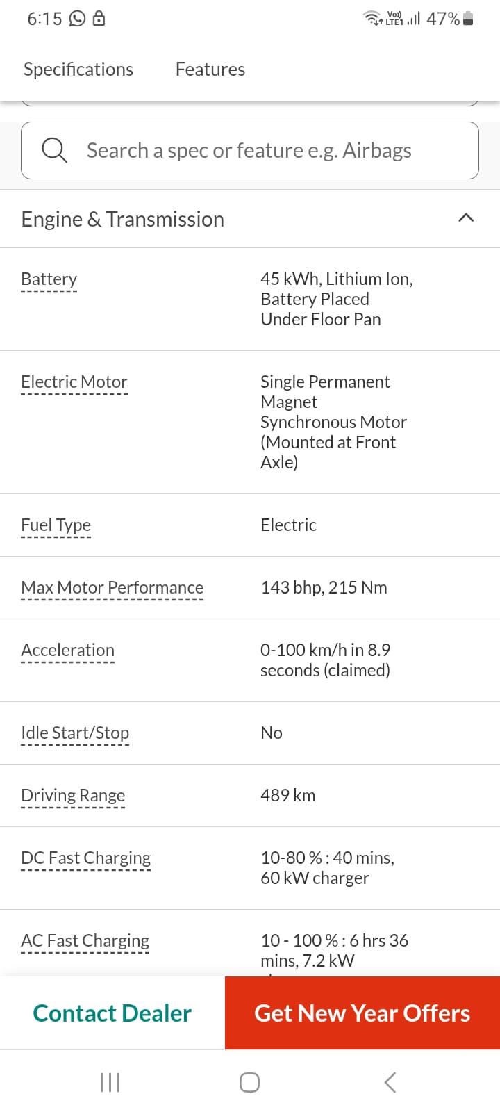 Max Power (bhp@rpm) 143 bhp @ 215 nm, Bootspace – 350 litres, Ground Clearance – 190 mm, Battery – 40.5 kWh, Driving range – 489 km, Wheels – Alloy Wheels, Sunroof – Yes, Airbags – 10, Tyre Size – 215/60 R16, Insurance RTO charges extra, if applicable. Monday Our Showroom Is Closed. This Vehicle Registration Date Is 27-12-2023 And Manufacturing Date Is 12-2023. NCAP rating of this vehicle is 5 Star, This Vehicle is Empowered Long Range, This Vehicle is Company Tax Paid.