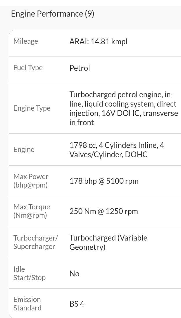 Max Power (bhp@rpm) 178 bhp @ 5100 rpm, Max Torque (Nm@rpm) 250 Nm @ 1250 rpm Bootspace – 625 litres, Fuel Tank Capacity – 66 litres Ground Clearance – 164 mm, Mileage (ARAI) – 14.81 kmpl, Wheels – Alloy Wheels, Sunroof – Yes, Airbags – 08, Tyre Size – 215/55 R17 We provide a 6-month warranty on Engine for the mentioned vehicle, 1% TCS applicable on transactions above 10 lakhs refundable, and by Govt. Insurance RTO charges extra, if applicable. Monday Our Showroom Is Closed. This Vehicle Registration Date Is 20-02-2020, and the manufacturing date is 03-2019. This vehicle NCAP rating is 5 stars. All four brand new tyres.