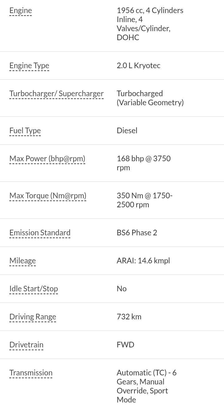 Max Power (bhp@rpm) 168 bhp @ 3750 rpm, Max Torque (Nm@rpm) 350 Nm @ 1750-2500 rpm, Bootspace – 425 litres, Ground Clearance – 205 mm, Mileage (ARAI) – 14.6 kmpl, Fuel Tank Capacity – 50 litres, Wheels – Alloy Wheels , Sunroof – Yes, Airbags – 10, Tyre Size – 235/65R17 We provide 6 months warranty on Engine for mentioned vehicle, 1% TCS applicable on transaction above 10 Lakhs refundable and by Govt. Insurance RTO charges extra, if applicable. Monday Our Showroom Is Closed. This Vehicle Registration Date Is 17-08-2023 And Manufacturing Date Is 07-2023. NCAP rating of this vehicle is 5 Star, Manufacturing Warranty Till Date – 17-Aug-2026.
