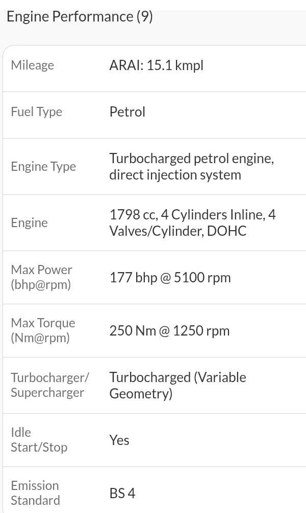 Max Power (bhp@rpm) 177 bhp @ 5100 rpm, Max Torque (Nm@rpm) 250 Nm @ 1250 rpm, Boots pace – 590 litres, Ground Clearance – 155 mm, Mileage (ARAI) – 15.1 kmpl, Fuel Tank Capacity – 50 litres Wheels – Alloy Wheels , Sunroof – Yes, Airbags – 08, Tyre Size – 205/55R16 We provide 6 months warranty on Engine for mentioned vehicle, 1% TCS applicable on transaction above 10 Lakhs refundable and by Govt. Insurance RTO charges extra, if applicable. Monday Our Showroom Is Closed. This Vehicle Registration Date Is 18-02-2020, And Manufacturing Date Is 11-2019. NCAP rating of this vehicle is 5 Star.